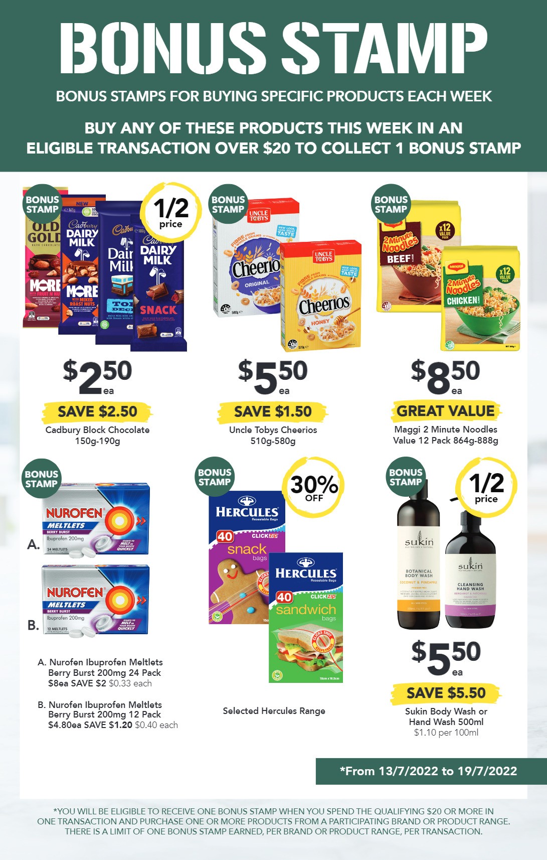 Valid from Wednesday 13/07 through Tuesday 19/07/2022